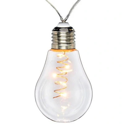 Set of 10 glass bulbs on a light string Pre-lit and illuminated with 50 warm white LED lights Ideal for hanging in your Living room or Bedroom Mains powered low voltage transformer Size: Bulb - 10 cm lead wire - 5 m total string light length - 7.5 m