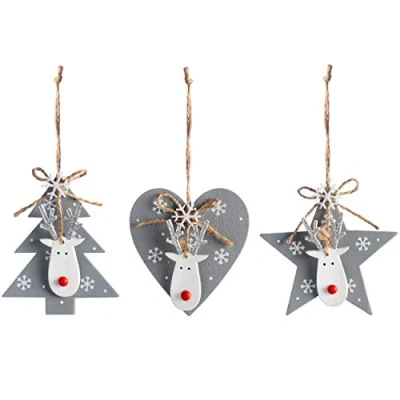Our Grey Set of 6 Hanging Christmas Decorations will look stunning on your Tree this year Each item features an elegant Snowflake pattern Each item comes with a hanging rope Christmas Heart Dimensions: (L) 8 cm / 3 inch (H) 8 cm / 3 inch Christmas Star Dimensions: (L) 9 cm / 3 inch (H) 8 cm / 3 inch