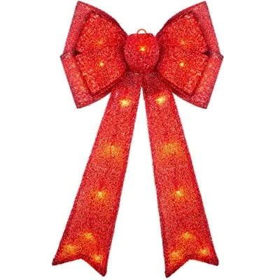 WeRChristmas Large Christmas Bow Decoration with 25 Chasing Warm LED Lights, Multi Colour, 1cm