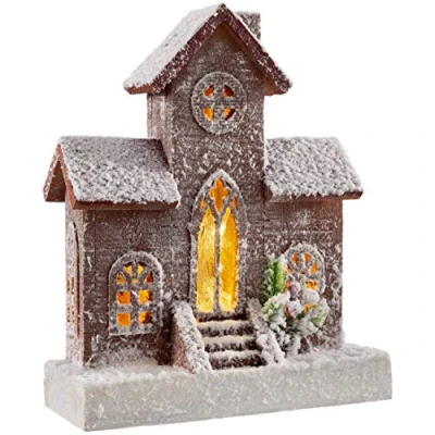 WeRChristmas Light Up Wooden Christmas Church Decoration, Multi Colour, 30cm