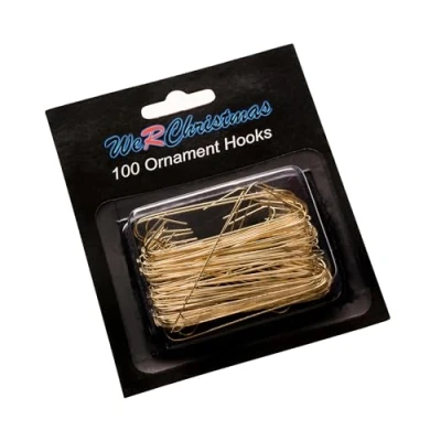 WeRChristmas Ornament Hooks, Metal, Gold, Pack of 100, 6 cm