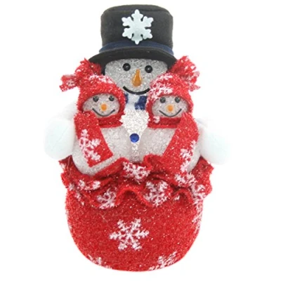 Multi-colour changing LED snowman family window/table Christmas decoration - height 25 cm This charming Snowman family decoration features two small baby snowmen and one larger, one all with hats and colourful scarves Inside are colour changing LED's which cycle through the colours gradually for an elegant tranquil feel to this decoration As this is battery operated it can be placed anywhere around your home with no unsightly wires Battery operated (requires 2 x AA batteries)
