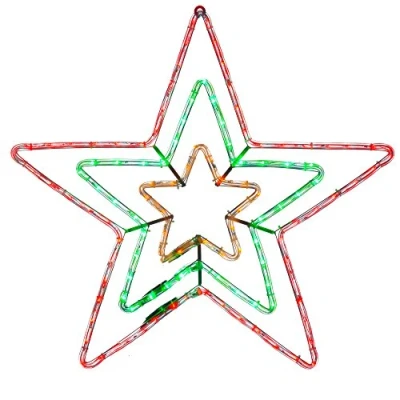 This elegant rope light silhouette features three stars Red and green flashing from inner to outer star Lead wire length 1.5 m mains voltage plug must be mounted indoors or in a weatherproof socket/container Turn your home into a winter wonderland this festive season Size: 70 x 72 cm