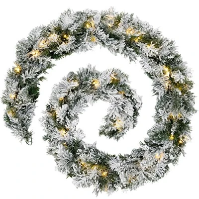 WeRChristmas 9 feet pre-lit snow flocked spruce Garland is an elegant way to decorate your home this Christmas It comes with a lovely frosted finish and 20 warm white LED lights all twisted together with the lovely green PVC material Made with 160 tips to give a lush full finish, this is an ideal way to decorate your banister or mantel piece Mains operated with 3 m lead wire Size: Length 2.7 m (9 feet)
