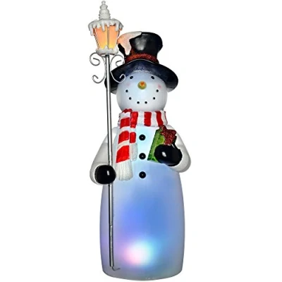 WeRChristmas Pre Lit Musical LED Colour Changing Snowman and Lamppost, Acrylic, 41 cm Multi