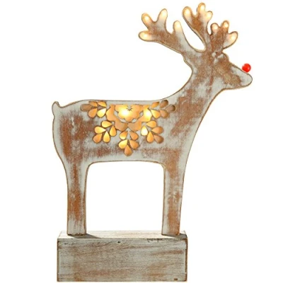 AmazonElegant wooden Rudolph with a dusting of white paint for an antique look Free standing base ideal for any side in your home Illuminated with 16 warm white LED lights to provide a gentle glow Requires 2 x AAbatteries (not included) Size: 38 x 28 x 5 cm