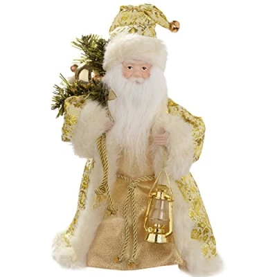 Top off your Christmas tree in style with this Santa tree topper Santa is dressed in cream and gold and has a big, bushy white beard He is carrying a gold lamp The finishing touch for your tree decorations Size: 30 cm (12 inch)