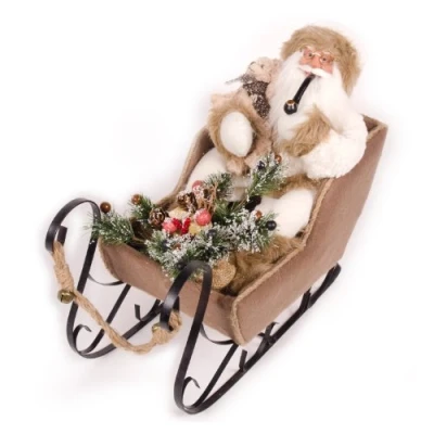 WeRChristmas Santa Sleigh in a Fur Outfit Decoration, 60 cm White/ Brown