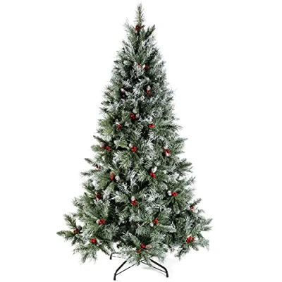 This looking Christmas tree is based on the Scandinavian blue spruce and even comes complete with pine cones It's fuller figure means it looks really bushy too so it won't look overloaded no matter how many decorations you want to put on it It's hinged construction means assembly is simple and it guarantees you'll be able to get the right shape to the tree Comes complete with foldable metal stand Size: Height 6 feet (1.8 m), tree base diameter 46 inches (117 cm)