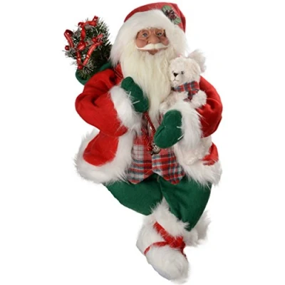 This large sitting Santa decoration is a addition to your mantelpiece during the festive season He's dressed in his traditional red jacket and sports a tartan waistcoat Over one shoulder he's carrying a large sack of Christmas decorations He's even carrying a little teddy and has a holly sprig in his hat Size: 60 cm (24 inch)
