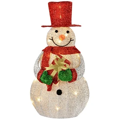 This elegant decoration features a festive snowman carrying a present and wearing a lovely hat and scarf It's been illuminated by 20 warm white LED's to provide a gentle glow The frame has been covered with fabric and a dusting of shimmering glitter for a glow when illuminated Requires 3 x AA batteries (not supplied) Size: 32 x 23 x 60 cm (12.6 x 9 x 23.6 inches) This wonderful decoration features a festive snowman carrying a present and wearing a lovely hat and scarf It's been illuminated by 20 warm white leds too The frame has been covered with fabric and a dusting of shimmering glitter for a glow when illuminated Requires 3 x AA batteries (not supplied) Size: 32 x 23 x 60 cm; (12.6 x 9.1 x 23.6 inches)