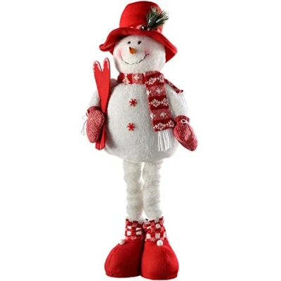 Designed with a lovely red and white knitted scarf Extendable legs for heights between 18-30 inches Features a sprig of holly on his hat with a red berry and pine cones An ideal addition to your Christmas decorations Size: Height 46-76 cm (18-30 inches)