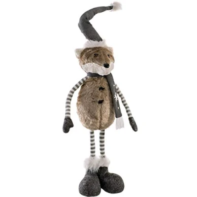 Our Standing Christmas Fox will look stunning in your home this year He is wearing a Grey traditional Christmas hat with a White fur trim and a Grey knitted snowflake scarf with a White fringe trim He also has a pair of grey mittens on along with a pair of Grey boots that have a White fur trim He is freestanding Height: 56 cm / 22 inch