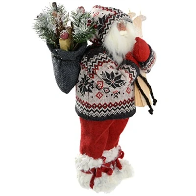 WeRChristmas delightful standing Santa decoration is packed full of intricate detail He's dressed in a lovely knitted jacket with a ideal looking pattern on and carries a little set of ski's Over one shoulder he's also carrying a little sack and he's even got some little spectacles on This is ideal for your mantelpiece or he can be used as a freestanding ornament next to your tree Size: 45 cm (18 inch)