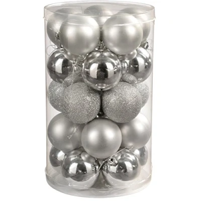 This 25 piece circular bauble pack come in a variety of finishes including shiny, matt and glitter Finished in a silver which will really bring your tree to life WeRChristmas extensive range of bauble packs come in a variety of size and colours to suit all tastes Comes complete with hanging string, please note we also sell plastic bauble hooks if you prefer to use these Contents: 25 x 60 mm