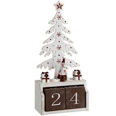 Countdown to Christmas with this lovely wooden advent calendar Features two dice with numbers allowing you to change the date This is an ideal way to decorate a windowsill, sideboard or mantel piece White and brown theme featuring a Christmas tree and Santa Size: Height 19 cm (7.5 inches)