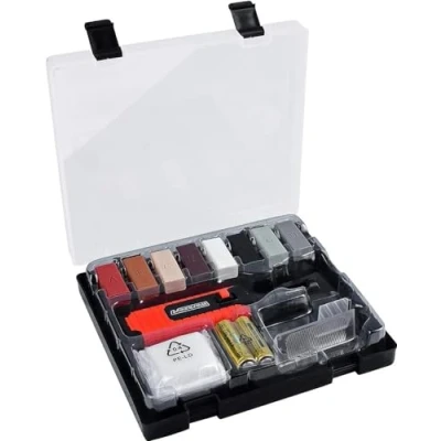 Werkzeyt B27692 Tile Repair Kit 14 Pieces 8 Different Shades Includes Wax Melter, Planer & Sanding Sponge Suitable for Smooth Surfaces of All Types/Repair Stone