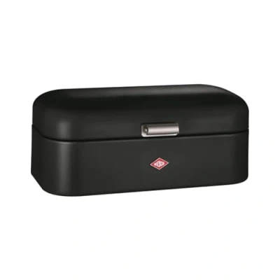 WESCO Grandy bread bin in matt black, powder coated sheet steel, ventilation holes and sturdy handle