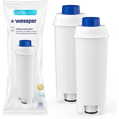 Features: Wessper AquaLunga water filter fully automatic coffee machine, suitable for selected models from Delonghi. Protects and extends the life of the coffee machine. Special twist lid with date display makes it easy to control the date for the next filter change Function - The filter effectively reduces impurities, reduces the concentration of harmful substances and water deposits. Reduces water hardness, providing clean and flavorful water for brewing coffee and tea Taste guarantee – water filter cartridges reduce chlorine, heavy metals and other unwanted substances from the water, guarantees excellent coffee taste and aroma Service life: regular use of the filter cartridges, at least once every 2 months, protects and extends the life of the coffee machine. Reduces the risk of limescale deposits in the coffee machine Compatibility - Universal Wessper water filter for Delonghi coffee machines DLSC002, SER3017, 5513292811, 8004399327252 and similar. Compatible with ECAM, ESAM, ETAM, SECAM, Evo coffee machines, Weight: 0.4850169764 Pounds, Manufacturer: WESSPER