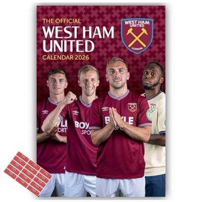 West Ham Calendar 2026 A3 Wall Hanging with FREE Organising Stickers Included