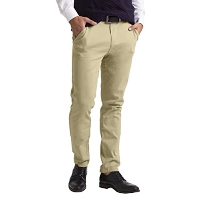 westAce Mens Chino Trousers Slim Fit Stretch Twill Casual Pants (30W / 32L, Beige)