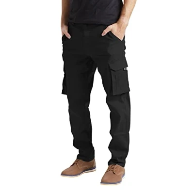 westAce Mens Stretch Cargo Flex Work Trousers Relaxed 12 Pocket Full Pants Size 32 to 44 (Black, 34W / 34L)