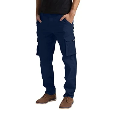 westAce Mens Stretch Cargo Flex Work Trousers Relaxed 12 Pocket Full Pants Size 32 to 44 (Navy, 34W / 34L)