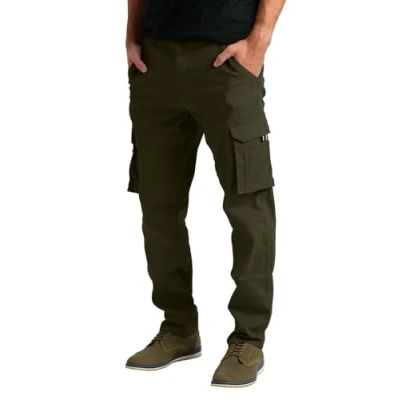 westAce Mens Stretch Cargo Flex Work Trousers Relaxed 12 Pocket Full Pants Size 32 to 44 (Olive, 36W / 30L)