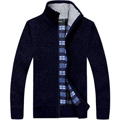 westAce Mens Zip Up Thick Fleece Lined Winter Knitted Cardigan Classic Jumper Cardigan[Navy,XXL]