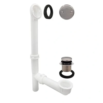 1-1/2 in. white tubular bath waste assembly Tip-toe bath tub drain plug; 2-hole faceplate with two 1/4 in.-20 x 1-1/2 in. plated brass screws White poly tubes with slip joint connections; 2-hole elbow, shoe and tee Heavy-duty metal trim, Weight: 6.25E-4 Pounds, Manufacturer: Westbrass