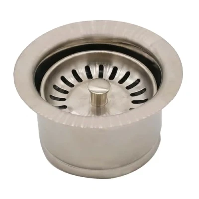 Westbrass D2082S 07 3 1/2" Extra Deep Collar Kitchen Sink Waste Disposal Flange & Strainer Stopper, Satin Nickel