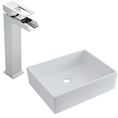 AmazonModern rectangular countertop bathroom basin with a high-rise open spout waterfall basin mixer tap Ceramic and solid brass construction Dimensions: 490mm x 390mm x 145mm (basin); 54mm x 105mm x 313mm (tap) Suitable for installation on a worktop or vanity unit You will need an unslotted or universal waste and bottle trap, Weight: 34.1275581576 Pounds, Manufacturer: Milano