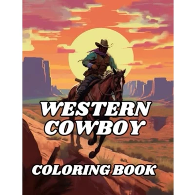 Western Cowboy Coloring Book: 40 Images 8.5x11 Calm Backgrounds and Scenery Mindful Stress Relief for Kids, Teens, Adults, Seniors