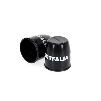 Original Westfalia ball protection cap for all trailer couplings. Universal cover for all couplings with 50 mm diameter - whether fixed or removable ball bars. Protects the ball head from external weather influences, such as water, salt and dirt. Material: plastic / colour: black with white Westfalia logo / original car accessory / packing unit: 2 pieces. Box contents: 2 x Westfalia ball protection cap. Box contents: Ball protection cap towing hitch. Part number: 917034630002.