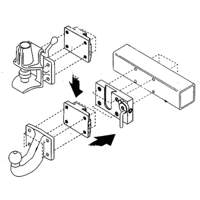 Removable plate system type 1501 Hole pattern: 83 x 56 mm / D value: 30.0 kN / bearing load: 120 kg / net weight: 5.8 kg Box contents: 1 x base plate, 2 x removable plates Use in conjunction with bolt-on plates or jaw couplings Reliable, perfect fit and visually appealing: Westfalia Automotive develops manufacturer-specific AHKs in OEM quality as the inventor of the car trailer hitch in cooperation with the car industry