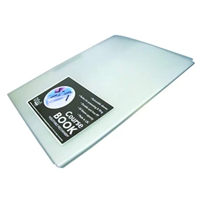 DURABLE Course book is made out of lightweight but strong poly-propylene, which has a wipe clean surface. The plastic sleeves are glass clear. Flat mechanism saves space and time, remove pages with ease without having to empty and refill every pocket IDEAL This course book is a perfect solution to store and protect your important file and paper document. It is great for presentations and filing information. This course book has a 50 sheet capacity (100 sides to view). Clear poly sleeve wallets ARCHIVAL QUALITY Material is acid and lignin free which makes a great storage option for archiving your important document and file information. Expanding capacity folders course book is great for storage of information or for a presentation wallet ENLARGE Expand your course book by adding additional pockets. West Course book is available in a great array of colours and sizes: A2, A3 and A4, crystal, raspberry, turquoise, opaline and black. Essentials for home, office, university and school CONTENTS This course project book is supplied with 10 clear poly plastic sleeves. The A4 and A3 have 20 pockets as standard, and A2 size is supplied with 10 pockets. Expand the book with extra clear display sleeves, which are sold separately