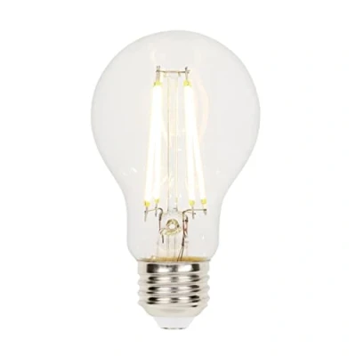 A60 filament LED bulbs are perfect for table lamps, pendant and vintage-style lights, ceiling fans, vanity and outdoor-rated fixtures Energy-efficient LED replaces incandescent 60-watt light bulbs and uses only 7 watts of energy, conserving up to 88% Brightness of 806 lumens, and warm white light appearance (2700K) Dimmable, E27 base, clear finish, damp rated, approved for use in enclosed fixtures LEDs turn on instantly to full brightness and last 15,000 average rated hours, years longer than conventional light bulbs