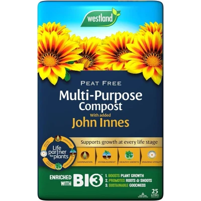 Westland Multi Purpose with John Innes Peat Free Compost 50l is a high-quality, peat-free compost blend suitable for all plant ages and types, supporting strong growth in pots, containers, beds, and borders, while promoting sustainable gardening with added John Innes ingredients for robust plant development.