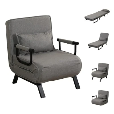 【MULTI-FUNCTIONAL 4-IN-1 SOFA BED】: This adaptable 4-in-1 sofa bed effortlessly transforms into a floor chair, sofa chair, chaise lounge, or single bed, making it ideal for guests and sleepovers. Its foldable design fits snugly in corners, optimizing limited space while providing a cozy relaxation spot. 【6-Position ADJUSTABLE BACKREST】: The adjustable backrest tilts from 0 to 85°, allowing you to easily switch between lying flat, reclining, or sitting upright. With six different positions, you can find your perfect comfort level to unwind and alleviate fatigue. 【EXCEPTIONAL COMFORT】: Filled with high-density sponge and covered in breathable linen fabric, this convertible sofa bed ensures comfort even during prolonged use. The included PP cotton pillow offers excellent neck and lumbar support. 【STURDY & RELIABLE CONSTRUCTION】: Featuring a powder-coated metal frame, this sleeper chair boasts remarkable strength and durability. The foldable hidden support legs in bed mode include non-slip foot pads for enhanced stability and floor protection. 【ELEGANT SPACE ENHANCER】: With its modern design, this lounge chair complements any decor, adding a touch of sophistication to your home or office. Whether reading, sleeping, watching TV, gaming, or lounging, it promises a satisfying experience every time.
