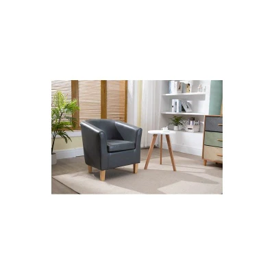 " Product Features: * Superior quality; * Soft to the touch but hard wearing; * Smooth curved back and soft cushioned seat, offering a supreme level of comfort; * Easy wipe clean; * Fully foam padded; * UK Fire Retardant Foam; * Ideal for Living Room, Dining Room, Bedroom or Conservatory of almost any home; * This tasteful tub chair will look stylish in any modern home interior, either as a single piece or to complement a living room suite; Product Specification: * Color: Grey; * Material: PU leather; * Overall Dimensions: 68(W) X 62(D) X 71(H)CM; * Height to seat 43cm; * Seat width 44cm; *Foam density: 24D; * Carton Size: 69X65X59CM; * Weight: - N.W.: 10 KGS; - G.W.: 11.5 KGS; "