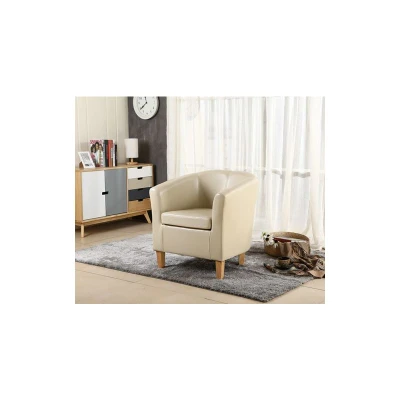 " Product Features: * Superior quality; * Soft to the touch but hard wearing; * Smooth curved back and soft cushioned seat, offering a supreme level of comfort; * Easy wipe clean; * Fully foam padded; * UK Fire Retardant Foam; * Ideal for Living Room, Dining Room, Bedroom or Conservatory of almost any home; * This tasteful tub chair will look stylish in any modern home interior, either as a single piece or to complement a living room suite; Product Specification: * Color: Ivory; * Material: PU leather; * Overall Dimensions: 68(W) X 62(D) X 71(H)CM; * Height to seat 43cm; * Seat width 44cm; * Foam density: 24D; * Carton Size: 69X65X59CM; * Weight: - N.W.: 10 KGS; - G.W.: 11.5 KGS; "
