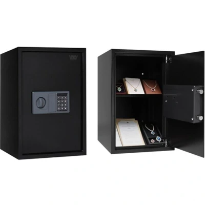ManoManoGeneral description This WestWood Small Security Safe Box is constructed from heavy-duty galvanized steel, providing resistance to wear, corrosion, and impact. It offers durable protection for your valuables, whether at home or in the office. Designed to be fireproof and moisture-resistant, it safeguards documents, cash, and irreplaceable items from daily accidents or emergencies. The safe features both a key lock and a secure code lock, allowing you to choose between key or password access, making it ideal for families, offices, or shared spaces. With a capacity of 42.7L, this compact safe efficiently stores your items without taking up much room, fitting seamlessly into wardrobes, under desks, or on shelves for both personal and professional use. Technical specifications Material: Steel Lock Type: Key and Code Lock (Two Locking Modes) Model: WW-DLSB02 Dimensions: 350 × 300 × 500 mm Capacity: 42.7L Weight: N.W.: 16.44 KGS; G.W.: 17.64 KGS Carton Size: 405 × 370 × 570 mm Accessories