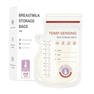 ๐ ๐๐ง๐ฌ๐ญ๐๐ง๐ญ ๐๐๐ฆ๐ฉ-๐๐๐ง๐ฌ๐ข๐ง๐ : ๐๐จ ๐๐ก๐๐ซ๐ฆ๐จ๐ฆ๐๐ญ๐๐ซ ๐๐๐๐๐๐: Larger, high-visibility color-changing indicator takes the guesswork out of feeding temp: Purple = Cold (below 35ยฐC: ready to warm) Blue = Ideal (35-45ยฐC: safe for baby to drink) White = Too hot (above 45ยฐC: cool before serving) Glance once to confirm safetyโperfect for sleep-deprived late-night feedings. ๐ซ ๐๐๐% ๐๐๐๐ค๐ฉ๐ซ๐จ๐จ๐ ๐๐จ๐ฎ๐๐ฅ๐-๐๐๐ฒ๐๐ซ ๐๐ซ๐จ๐ญ๐๐๐ญ๐ข๐จ๐ง๏ผDouble-zipper seal + reinforced side seams create unbreakable securityโno leaks when frozen, refrigerated, or accidentally dropped. Preserve every drop of breast milk without waste, even during travel or chaotic daily routines. ๐ฅ ๐๐๐ญ๐ญ๐๐ซ ๐๐ฎ๐ญ๐ซ๐ข๐๐ง๐ญ ๐๐จ๐๐ค: ๐๐ซ๐๐ฌ๐๐ซ๐ฏ๐ ๐๐ซ๐๐๐ฌ๐ญ ๐๐ข๐ฅ๐คโ๐ฌ ๐๐จ๐จ๐๐ง๐๐ฌ๐ฌ: Ultra-thick double layering and a superior oxygen barrier protect the essential nutrients in breast milk that your baby needs, with 10x better protection compared to our previous bags. Your baby will get every precious benefit you worked to provide. ๐๏ธ ๐๐ง๐-๐๐๐ง๐ ๐๐๐ฌ๐ฒ ๐๐จ๐ฎ๐ซ + ๐๐๐ฅ๐-๐๐ญ๐๐ง๐๐ข๐ง๐ ๐๐๐ฌ๐ข๐ ๐ง: Wide opening + secondary pour spout let you fill/pour milk with one hand (critical when holding baby or juggling pumps!). The self-standing bottom stays stable on countertops, while the flat, stackable profile saves precious freezer spaceโideal for small fridges/freezers. โ ๐๐๐๐ & ๐๐จ๐ฐ-๐๐๐ฌ๐ฌ๐ฅ๐: BPA-free, pre-sterilized: Made from food-grade recyclable materials (PE+PET) . Pre-sterilizedโno extra cleaning or disinfection needed, straight from the pack. Dedicated labeling area: Jot down fill date/volume to track freshnessโnever use expired milk again. ๐ฐ ๐๐ง๐๐๐๐ญ๐๐๐ฅ๐ ๐๐๐-๐๐๐๐ค ๐๐๐ฅ๐ฎ๐๏ผSkip frequent restocks with 200 durable 250ml bagsโenough to cover daily using for 3-6 months. Far more cost-effective than 50/100-pack alternatives, with the same great quality.