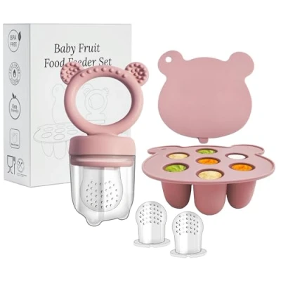 ππ₯πππ¬π π§π¨ππ ππ‘π ππ¨π«π«πππ π¨π©ππ§π’π§π π¦πππ‘π¨π: You need to use one hand to push the connecting ring while the other hand holds the bear-shaped ring on both sides.Because we use FDA-grade silicone material which is soft, if one side is frequently pulled with force, cracks are likely to appear. Natural Nourishment for Infantsπ·: Tailored as a fruit feeder for infants, this product provides a natural solution. Simply fill the pouch with fruits, purees, or smoothies for your baby to explore different tastes. Additionally, it doubles as a soothing tool for sore gums, accommodating mini popsicles to keep your baby comfortably cool. Secure Introduction to Solidsπ: Featuring a soft silicone pouch with strategically placed small holes, this feeder facilitates easy baby self-feeding. It permits only small, digestible pieces to pass through, ensuring a safe method to introduce solids and new flavors without the risk of choking. Baby-Friendly Handle Designπ: The baby fruit food feeder boasts a thoughtfully designed handle with a large circular head, providing an easy grip for little hands. This design encourages self-feeding, fostering independence and enhancing hand-eye coordination. Perfect for babies aged 3 months and above, it makes self-feeding an effortless experience. Comprehensive Safety FeaturesπΆ: Embracing a whole silicone design, this baby fresh food feeder guarantees a safe chewing and sucking experience for your infant. It proudly stands as BPA-free, Latex-free, Lead-free, and Phthalates-free, prioritizing your baby's well-being. Effortless Cleaningπ: Engineered for convenience, this baby feeder can be disassembled for thorough cleaning. Whether using a dishwasher or simply rinsing with water, there are no hidden corners for mold to thrive. Additionally, it is microwave and boil safe. The feeder's handle shape facilitates easy hang-drying and storage, ensuring hygiene and practicality.