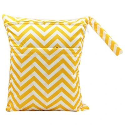 Wet Bag, Zeako Waterproof Reusable Portable Cloth Diapers Bag with Double Zippered Pockets Dry Washable for Baby Diaper, Travel, Beach, Pool, Gym (Yellow Stripes)