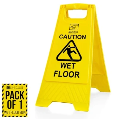 PORTABLE AND LIGHTWEIGHT DESIGN: An A-Frame free standing plastic body easily transportable thanks to its foldable capability with a carry handle built into the frame. HIGHLY VISIBLE SIGN: a CAUTION WET FLOOR SIGN designed with bold text and clear symbol, and printed on a bright yellow background make this sign visible from far away CONVENIENT STORAGE: the warning sign folds flat for convenient storage space and transportation. The dimensions of our wet floor signs are 60 cm (23.5") high by 30cm (12") wide SAFETY CONES: ideal to protect staff and visitors from slippery surfaces, cleaning in progress, wet floor, and temporary hazards by positioning the wet floor cones in a visible place for passersby DURABLE: made of heavy-duty plastic is ideal for all indoor and outdoor environments. Use it to warn people of temporary hazards in offices, stores, malls, warehouses and homes