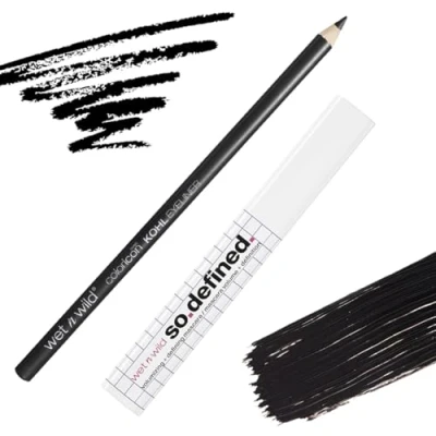 Wet n Wild, So Defined Volumizing + Defining Mascara with Bonus Color Icon Kohl Eyeliner Pencil, Highly Pigmented, Essential 2 Piece Bundle for Bold Eye Make up Looks