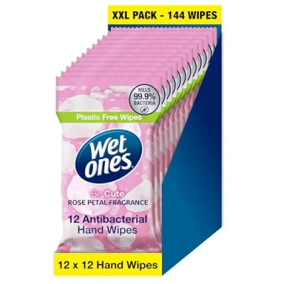 WET ONES Be Cute, Plastic Free Anti bacterial Bio degradable Hand Wipes, 144 Total 12 packs of wipes