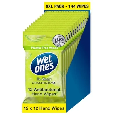Wet Ones Be Zingy Plastic Free Antibacterial Pocket Size Hand wipes 144 12 packs x