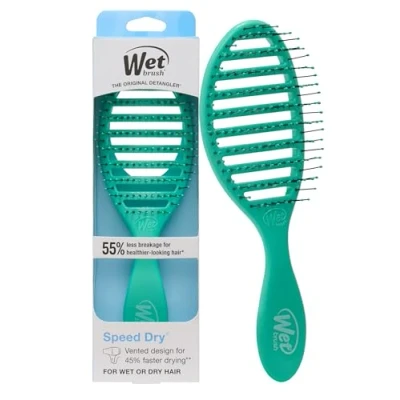 Speed Dry: The Wet Brush Speed Dry gently loosens knots while blow-drying without pulling or snagging. This vented brush helps hair stay strong and healthy. The moment you use it, you'll feel the difference, and never want to try another hairbrush again. Speeds Drying Time: Open vented design allows moisture to be removed from the hair faster, speeding drying time. HeatFlex Bristles: HeatFlex heat-resistant bristles gently detangle while blow drying. The bristles are blow-dry safe. Comfort Design: Brush design contours to scalp for extra comfort. For All Hair Types: Perfect for straight, curly, textured, thick, and wavy hair. Also works great on both wet and dry hair.